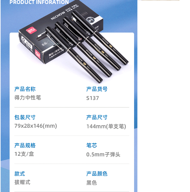 得力S01中性筆 黑色 0.5mm